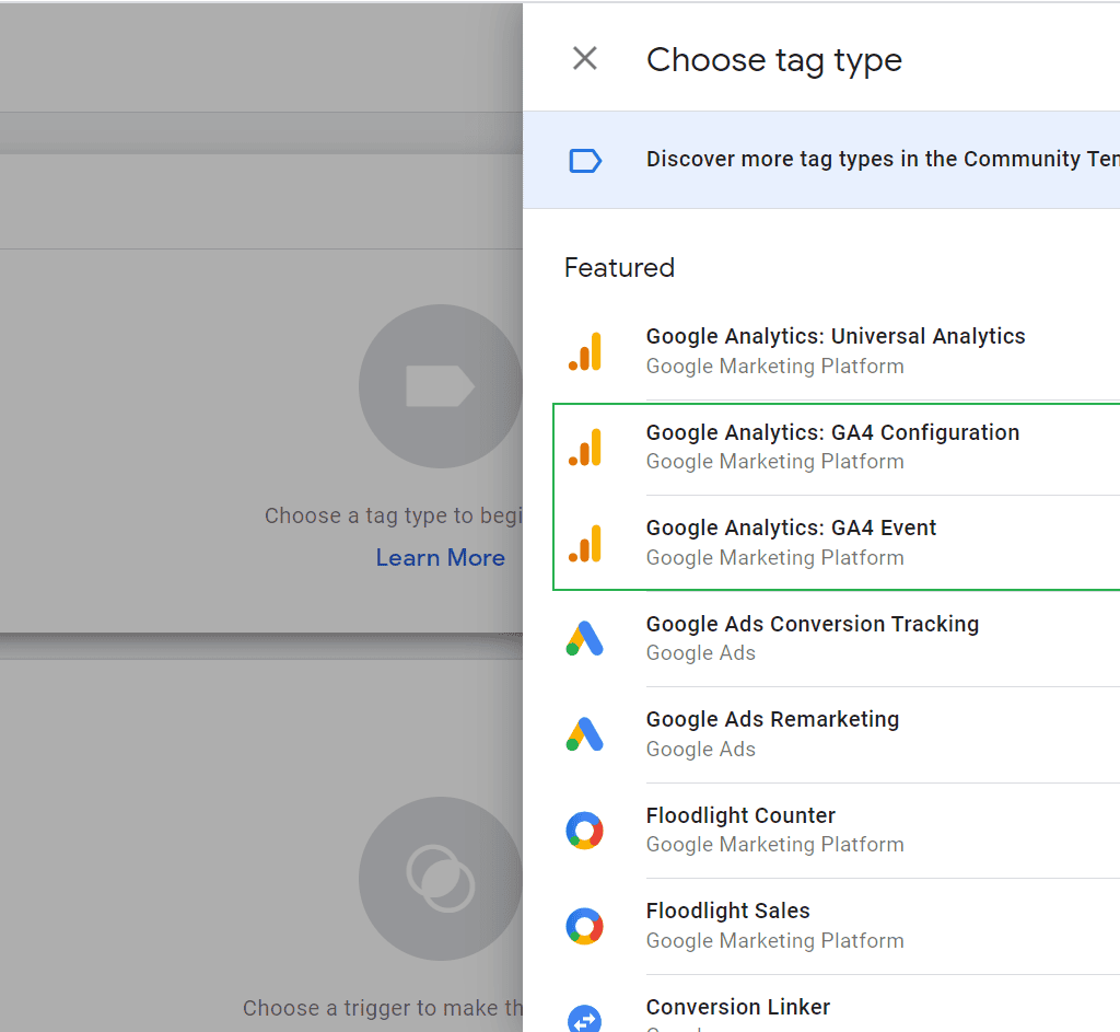 ใน Google Tag Manager จะมีสอง GA4 ให้เลือก สำหรับการติดตั้งแบบที่จะตรวจสอบว่ามีคนเข้าเว็บไซต์ของเราบ้างไหม ให้เลือก GA4 Configuration นะครับ เพราะถ้าแบบที่สองจะเป็นการสร้างอีเว้นท์
