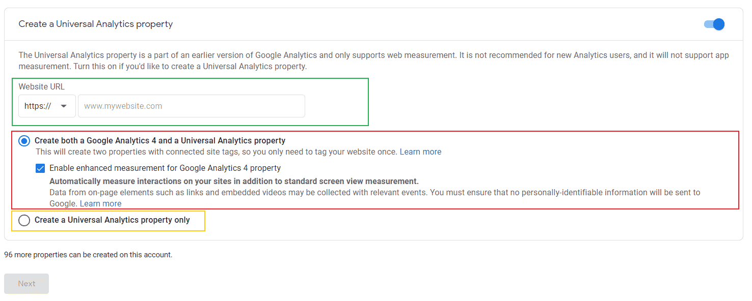 ถ้าเราสร้าง Google Analytics จะบังคับให้เราใช้ระบบ GA4 Property แต่ว่าเรายังสามารถที่จะเลือกจะใช้แบบ Universal Google Analytic ได้อยู่ แต่จะทำอย่างไรนั้นสามารถทำตามได้ตามขั้นตอนด้านล่างครับผม