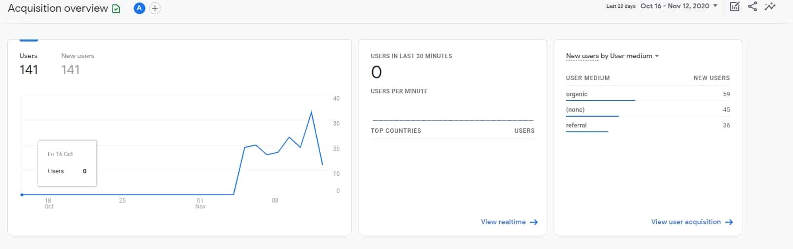 ส่วนแรกจะเหมือนกับการรายงานผล Acquisition ของ Universal Analytics เลยครับ เพียงแต่ว่าจะมีให้เลือกเพียงแค่ 2 หัวข้อใหญ่ๆ เท่านั้น ก็คือ Users และ Traffic Acquisition โดยทั้งสองหัวข้อนี้จะมีความแตกต่างกันเพียงแค่นิดเดียวก็คือ ตัวเลขที่คุณเห็นจะไม่เท่ากัน โดยที่ตัวเลขของ Traffic นั้นจะมากกว่าฝั่งที่เป็น Users ซึ่งก็เหมือนกับที่เราได้เข้าใจกันนั่นแหละว่าถ้าเป็น Sessions จะมีการนับซ้ำ