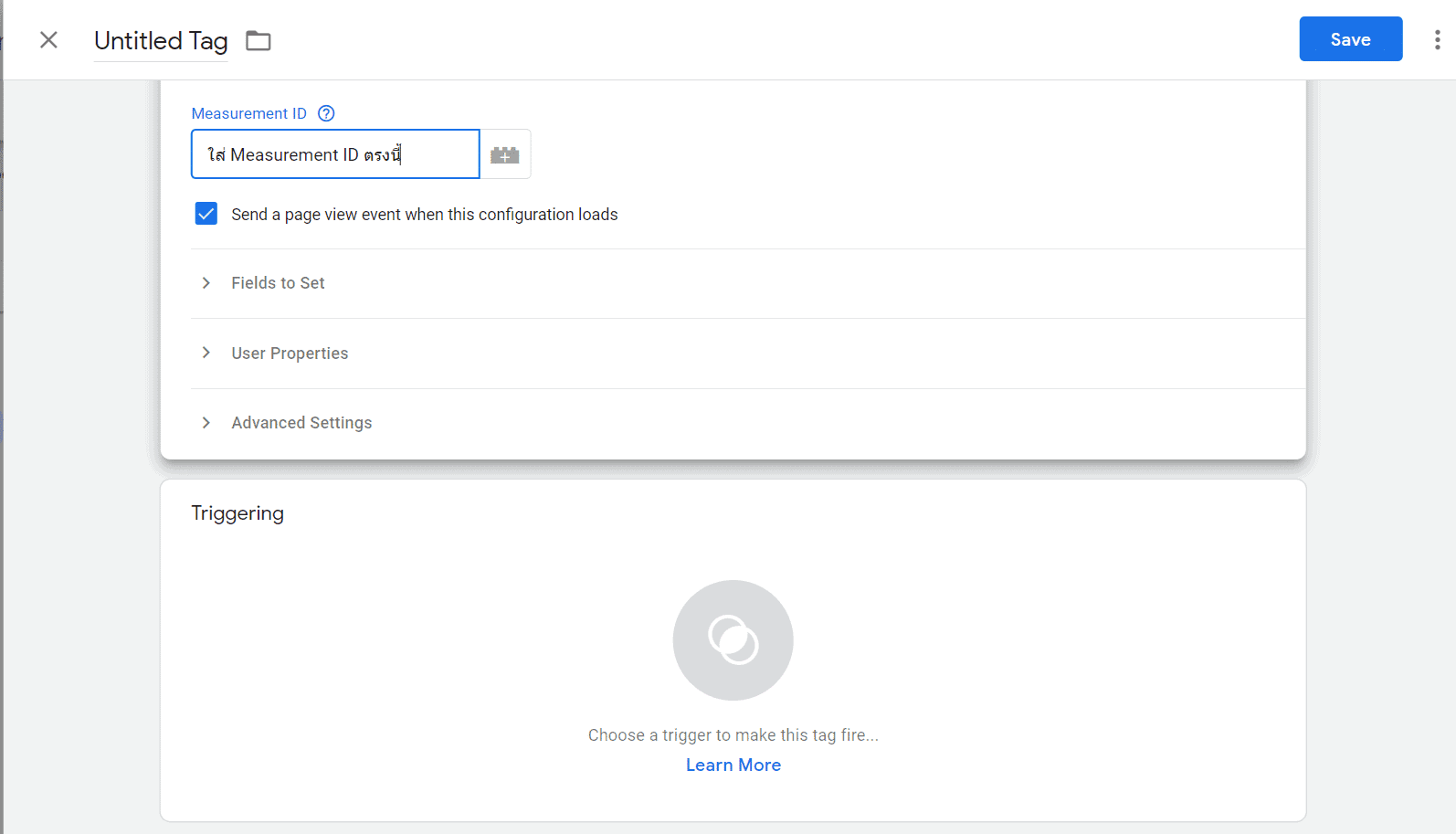 นำ Measurement ID มาติดตั้งใน Tag Manager
