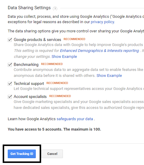 เมื่อตั้งค่าด้านบนเสร็จเรียบร้อย เลื่อนลงมาอีกนิดให้คลิกที่คำว่า Get Tracking ID ก็จะถือได้ว่าเสร้จสิ้นในการตั้งค่า เบื้องต้น แต่ Google Analytic มันยังจะใช้งานไม่ได้ ถ้าเรายังไม่ได้นำไปติดตั้งในเว็บไซต์