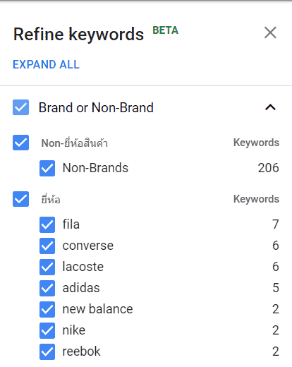 - Brands ก็คือค้นหาที่มีแบรนด์ดังๆ อยู่ในคำค้นหานั้นๆ เช่น กระเป๋า Adidas เป็นต้น