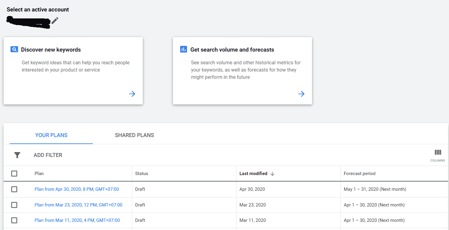 ส่วนด้านล่างที่เขียนว่า “Your Plan / Shared Plan” เป็นเพียงแค่ที่เก็บข้อมูล การ Forecasts เดิม ที่คุณสามาถคลิกกลับเข้าไปดูได้ ดังนั้นอย่ารอช้าคลิกไปที่ Discovery New Keyword กันเลย