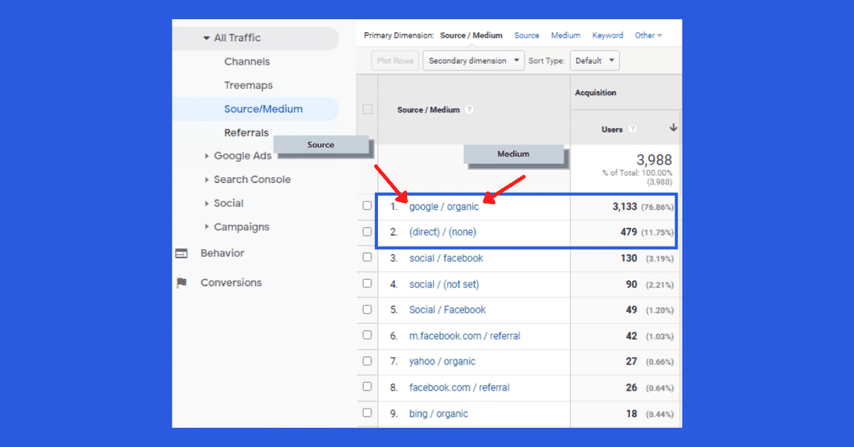 เราสามารถดู ‘Source/Medium’ ได้โดยเข้าไปที่ Acquisition > All Traffic > Source/Medium ระบบก็จะแสดงให้เห็นเป็นแบบภาพตัวอย่างด้านบน อย่างไรก็ตามถ้าเราคลิกไปที่ Channel เราอาจจะเห็นบางส่วนรวมอยู่ใน ‘Others’ ซึ่งถ้าอยากรู้ว่าทำไมนั้น แนะนำให้อ่านที่ ‘Default Channel Grouping คืออะไร